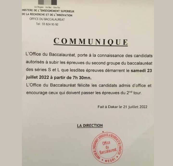 Les candidats du baccalauréat admissibles pour le second tour vont subir les épreuves du second tour, ce samedi 23 juillet 2022. Les épreuves vont démarrer samedi 23 juillet, précisément à partir de 7h30 mn.