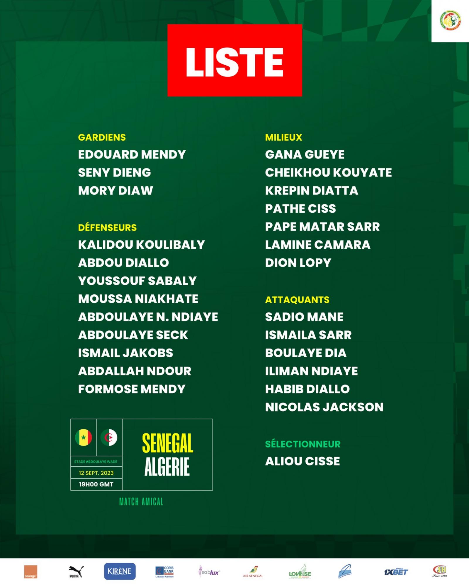 Sénégal-Algérie : Aliou Cissé a publié sa liste