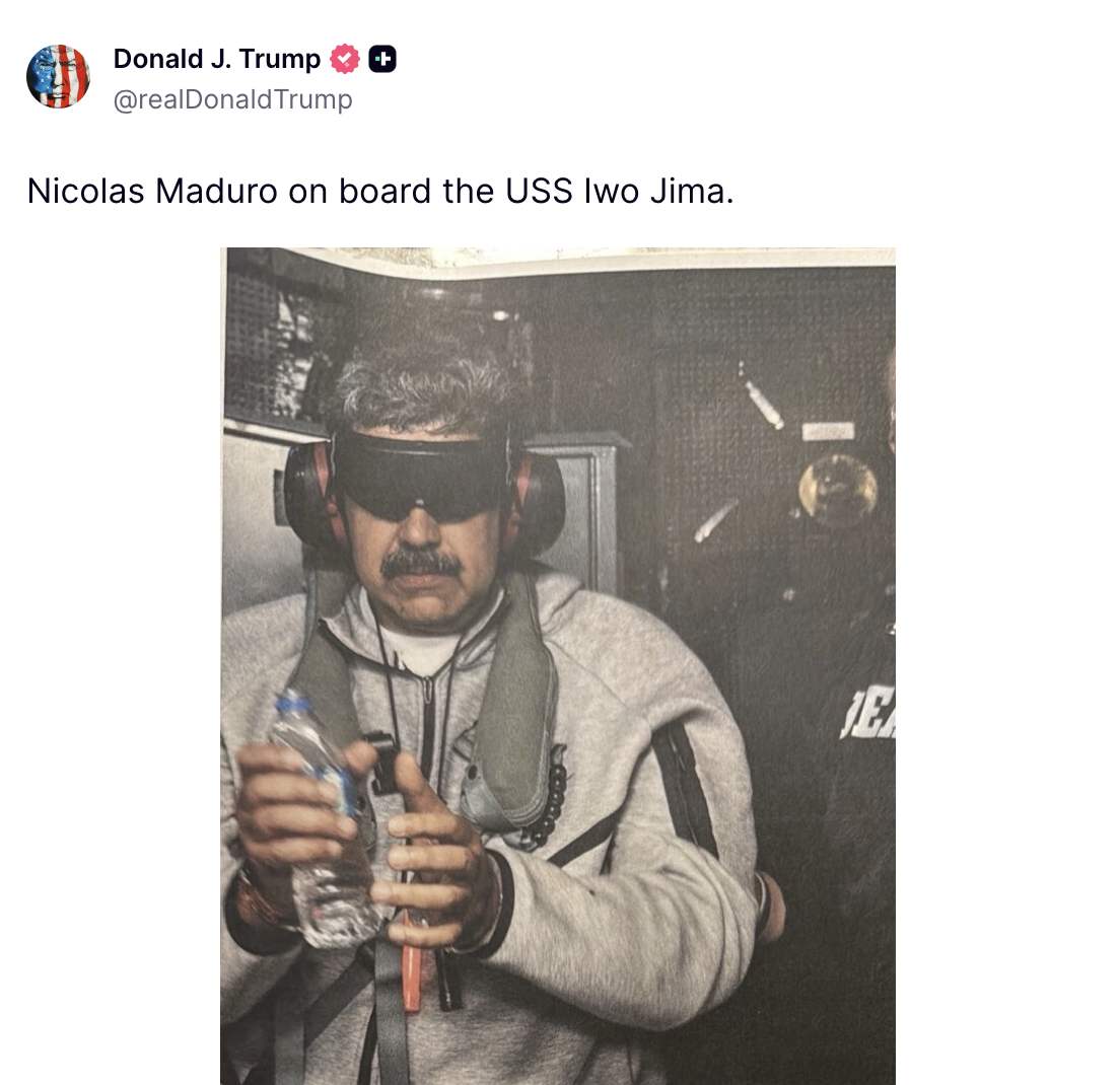 Trump publie l’image de la capture de Nicolas Maduro